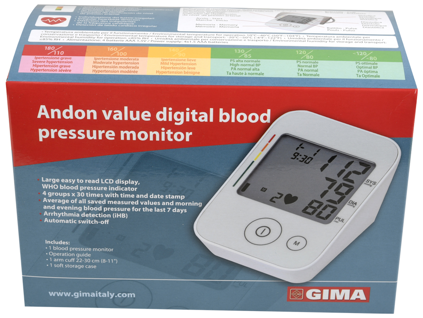 The Andon blood pressure monitor is a medical device designed to measure blood pressure and pulse rate accurately and reliably. Ideal for use at home or in the doctor's surgery, it enables regular monitoring of your cardiovascular health.