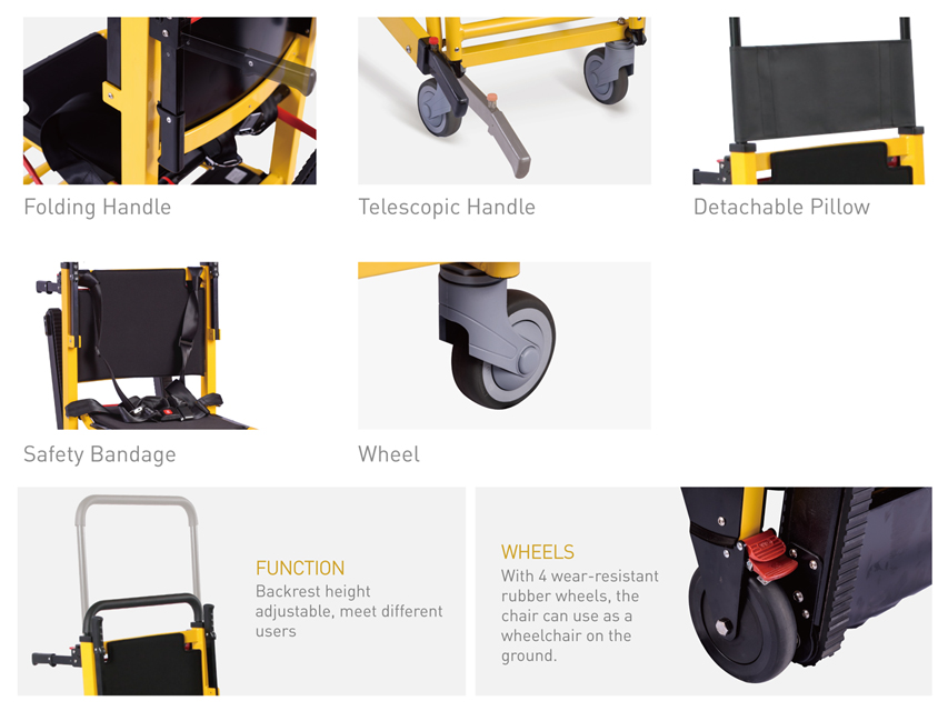 The chair evacuation stair folding is an essential equipment to ensure the safety of people with reduced mobility during an emergency evacuation. Its ergonomic design and quality materials ensure the safe and efficient transport.