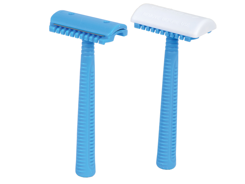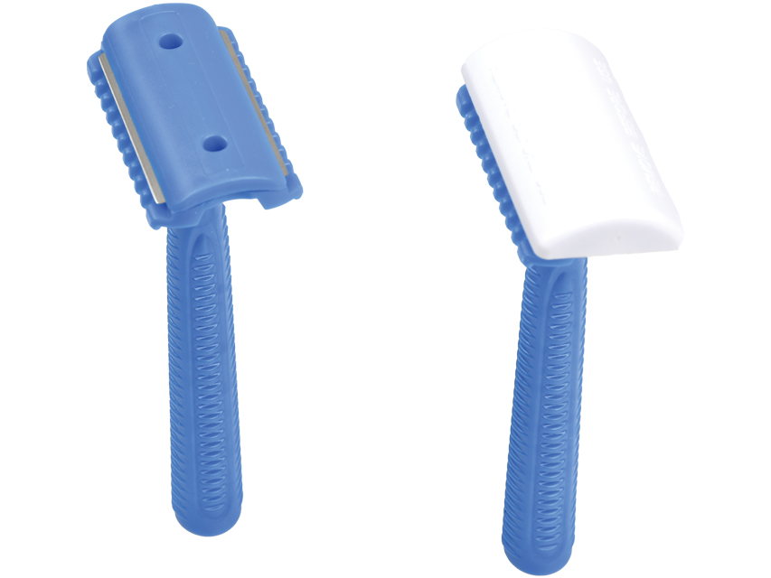 - Razors, disposable, non-sterile, designed with a stainless steel blade.