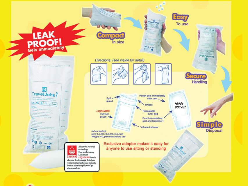 Le TravelJohn est un urinoir jetable conçu pour une utilisation pratique et hygiénique dans les situations où l’accès à des toilettes peut être limité. Idéal pour les voyages, le camping ou les urgences, il offre une solution sécurisée et sans odeur pour les besoins naturels.