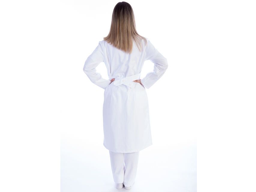 Ce tablier médical blanc est conçu pour les professionnelles de santé qui recherchent à la fois style et fonctionnalité. Sa composition en coton et polyester assure confort tout au long de la journée, tout en maintenant une apparence soignée.
