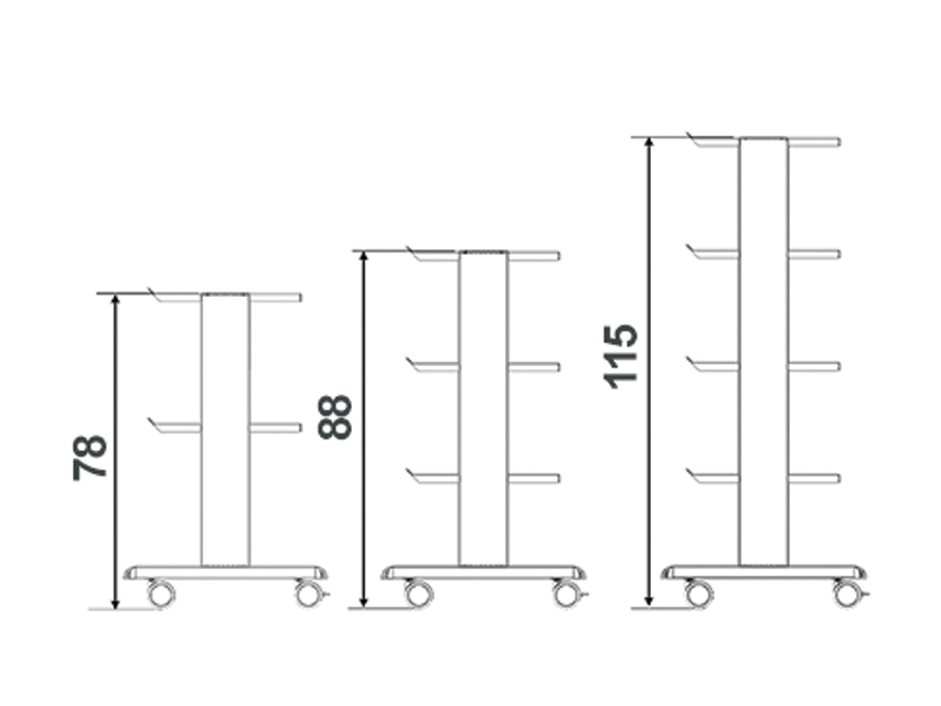 - Charge totale : 80 kg, charge par tablette : 15 kg