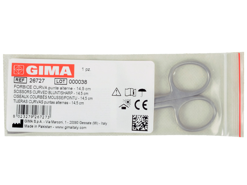 - Type : Ciseaux chirurgicaux courbés et pointus.