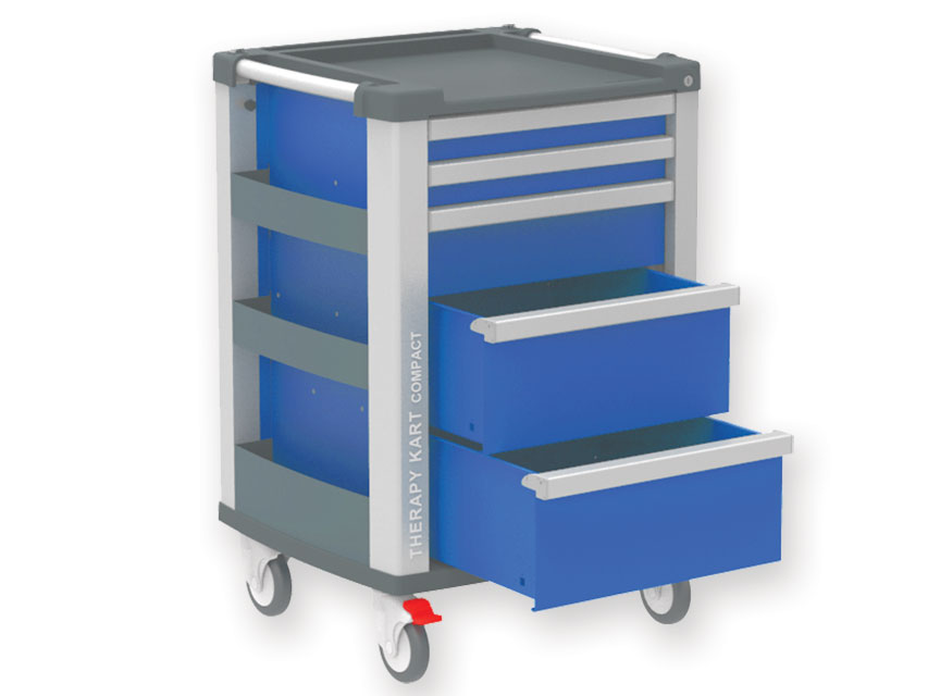 Le COMPACT KART – bleu est un chariot médical conçu pour optimiser le rangement et l’accessibilité des outils et matériels en milieu hospitalier. Sa structure robuste en aluminium et ses tiroirs multifonctions en font un allié indispensable pour les professionnels de santé.