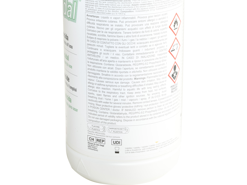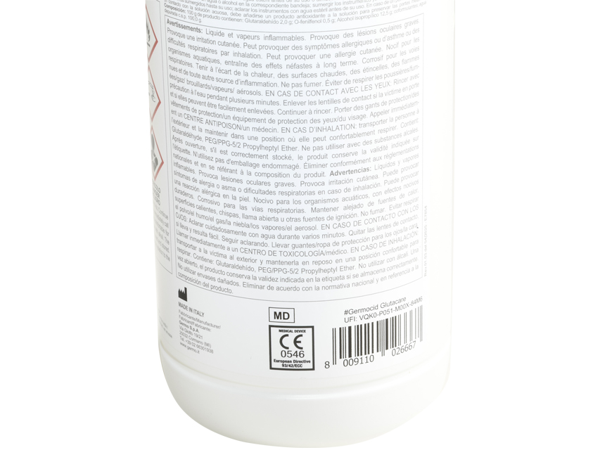 - Contient du glutaraldéhyde, de l’orthophénylphénol et de l’alcool isopropylique.