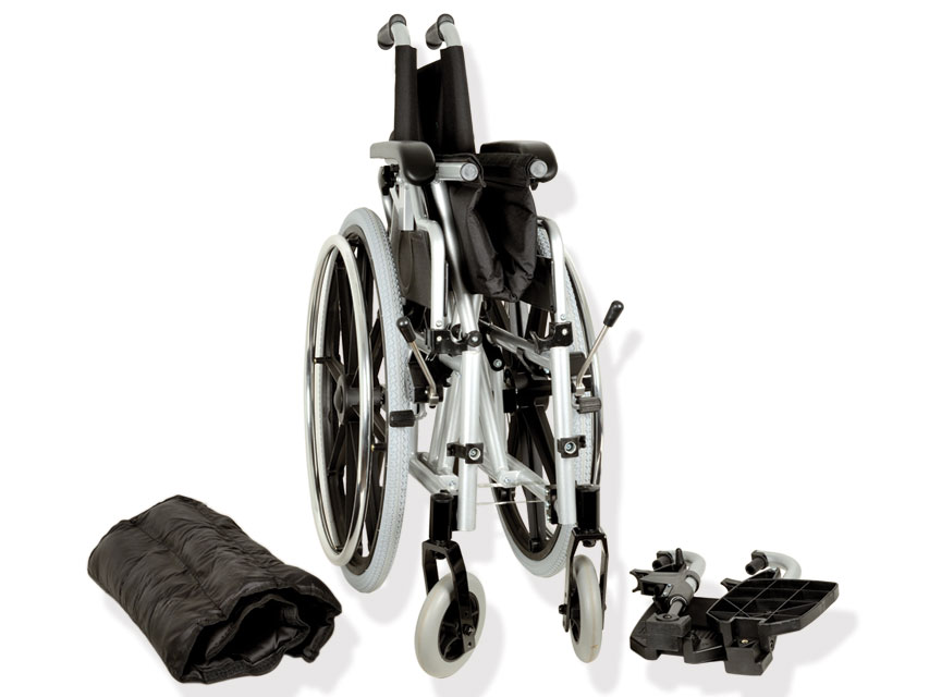 • Repose-pieds détachables et réglables, avec ceinture pour jambes.