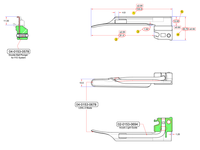 - Choix de 7 lames Miller et McIntosh disponibles.