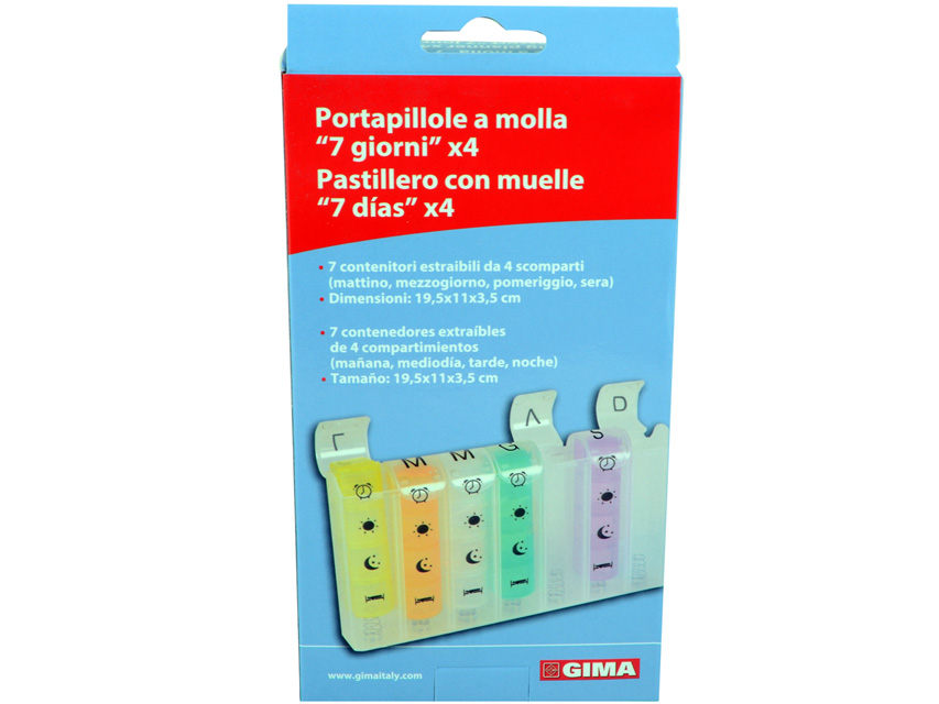 - Dimensions totales du pilulier : 19,5 x 11 x 3,5 cm.