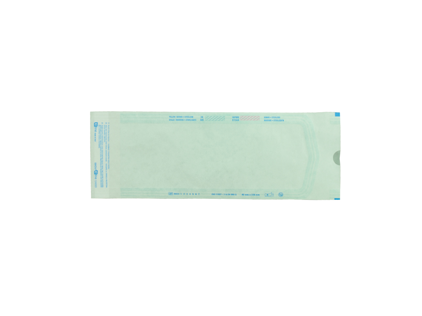 - Film en polyester-polypropylène vert clair, compatible avec la stérilisation à la vapeur et à l’éthylène.