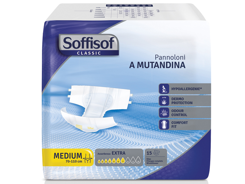 Les couches SOFFISOF CLASSIC sont spécialement conçues pour les personnes souffrant d’incontinence modérée. Elles allient confort, sécurité et efficacité, garantissant une protection discrète tout au long de la journée.