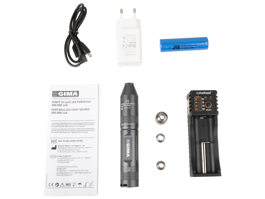 - Livré avec 2 adaptateurs pour endoscopes Storz et Wolf, 1 adaptateur pour câble à fibres optiques, batterie et chargeur.